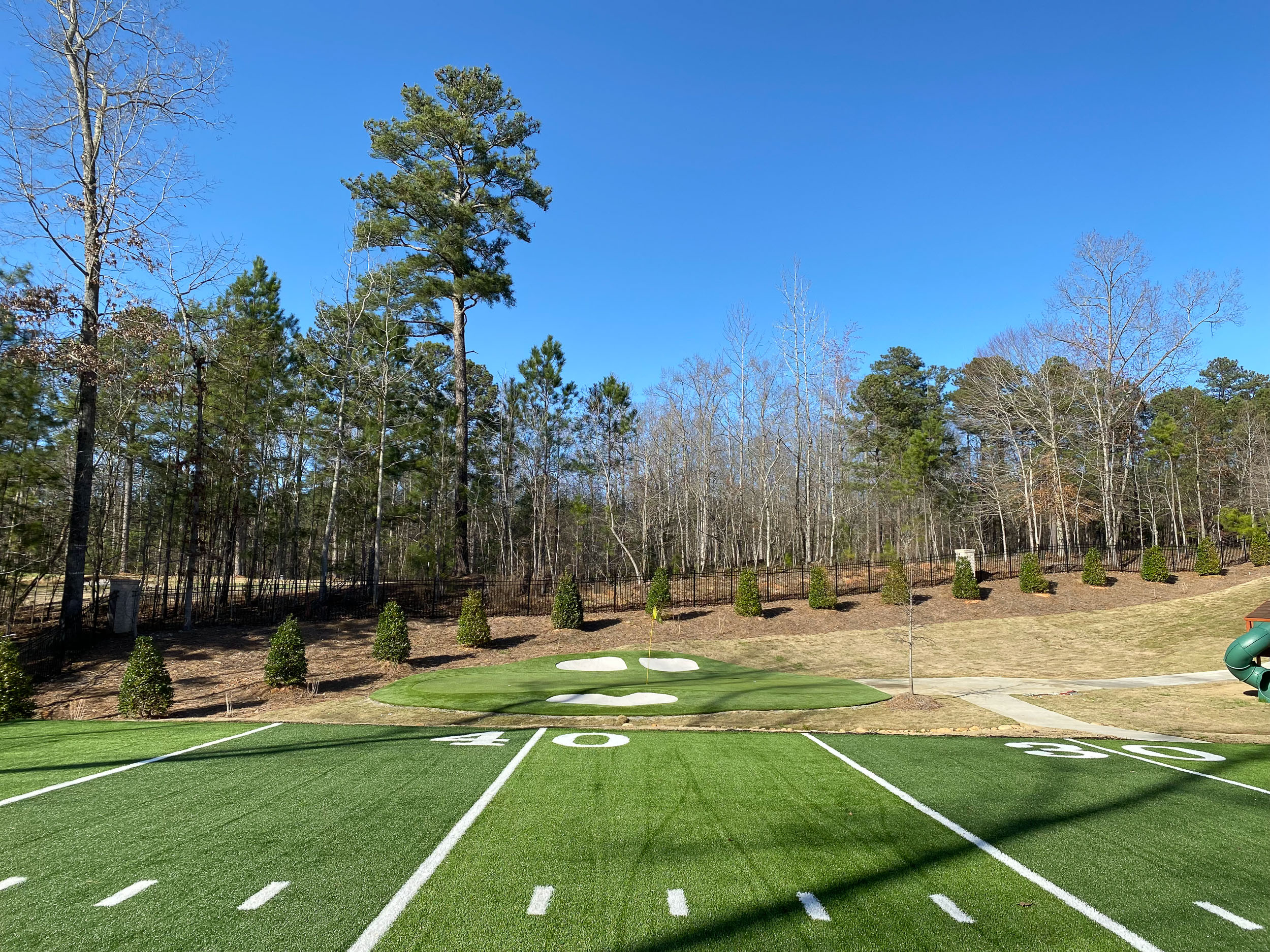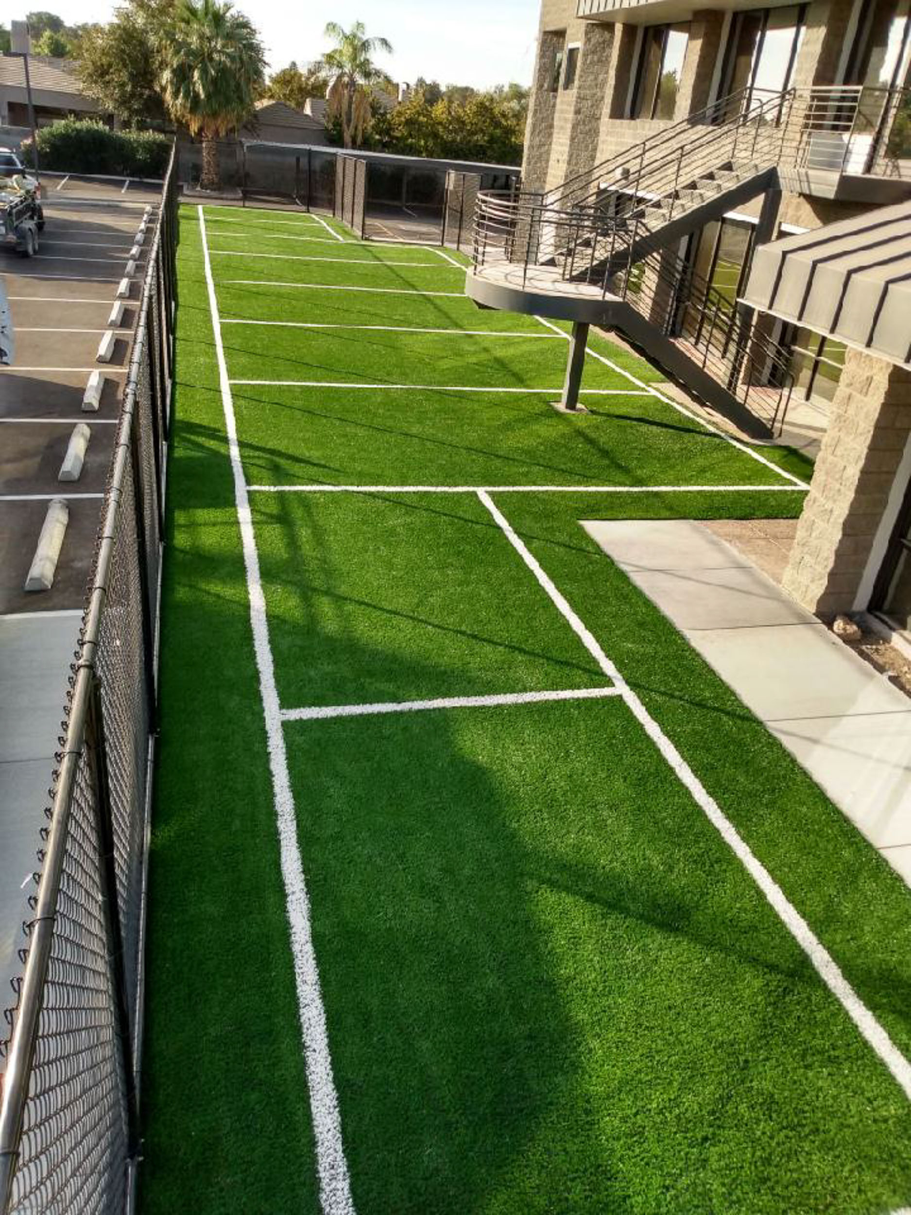 Whether you’re seeking synthetic turf for a commercial sports facility or aiming to create a dedicated sports area in your backyard, our team of highly experienced designers and installers is ready to deliver top-quality results. We can design and install athletic turf for everything from tennis courts, baseball fields, football fields, track and running surfaces, soccer pitches, even bocce courts. And our colors aren’t limited to just green. We install custom artificial grass fields in virtually any color you can imagine.